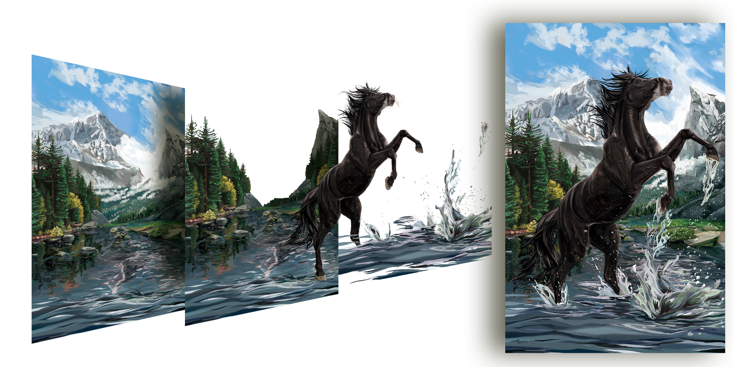 My goal was develop this illustration digitally so that I could export out individual layers or replace with new artwork.